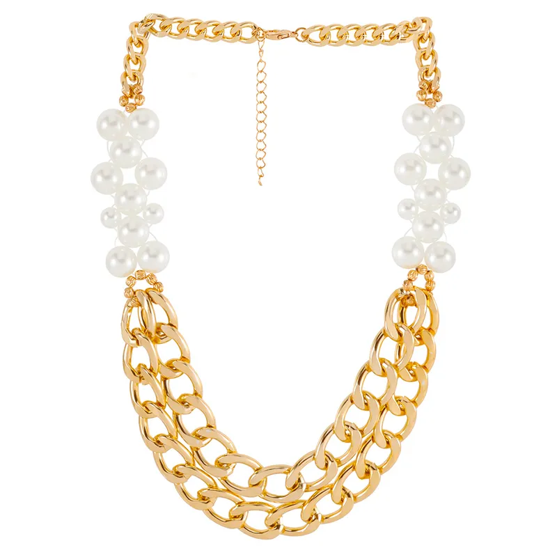 This modern piece features a lightweight alloy foundation adorned with shimmering faux pearls. The radiant colors ensure you stand out at any event.